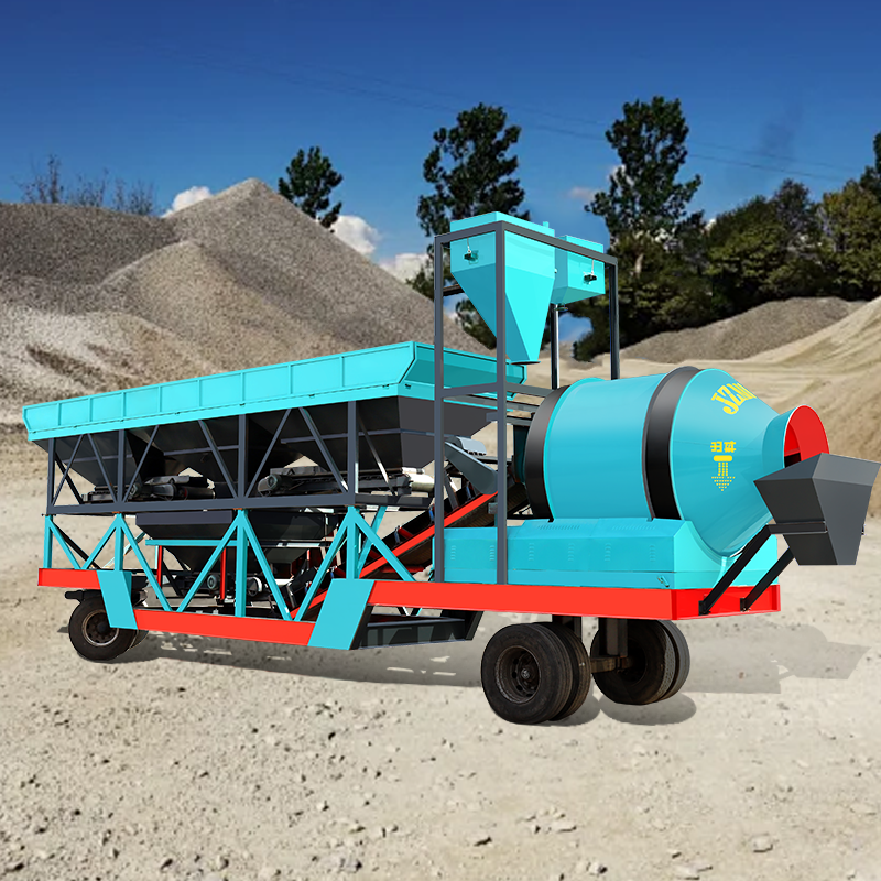 Portable Mobile Concrete Drum Plant Road Construction Containerized Concrete Mixing Machinery Batching Plant